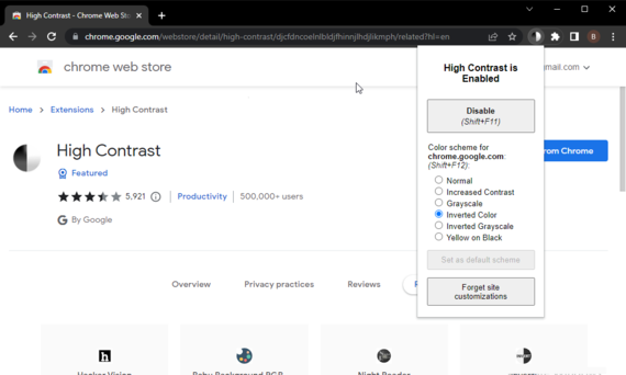 Certains des meilleurs navigateurs modernes ont cette fonctionnalité intégrée, tandis que vous devez installer des extensions sur certains pour augmenter le contraste. En outre, certains s'adaptent automatiquement au paramètre de contraste élevé de votre PC.