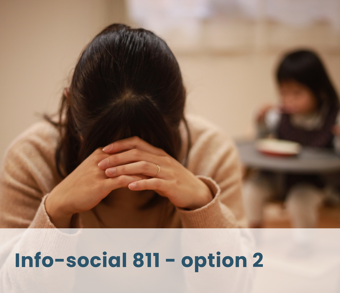 - Appelez Info-Social (ouvert 24/7) en composant le 811, option 2.